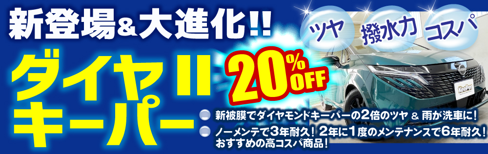 ※人気でおすすめのコーティングメニューは、ダイヤツーキーパー、エコダイヤキーパーです。各コーティングメニューの特徴やサイズ毎の料金はこちら。