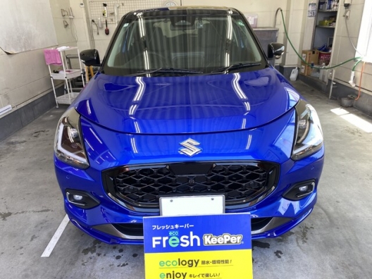 フレッシュキーパー施工頂き有難う御座います。当店オススメのフレッシュキーパーを施工させて頂きました。フレッシュキーパー施工で、ブルー色のボディに輝きと艶が出ました✨雨の日の水弾きが楽しみですね♪またのご来店お待ちしております♪ |